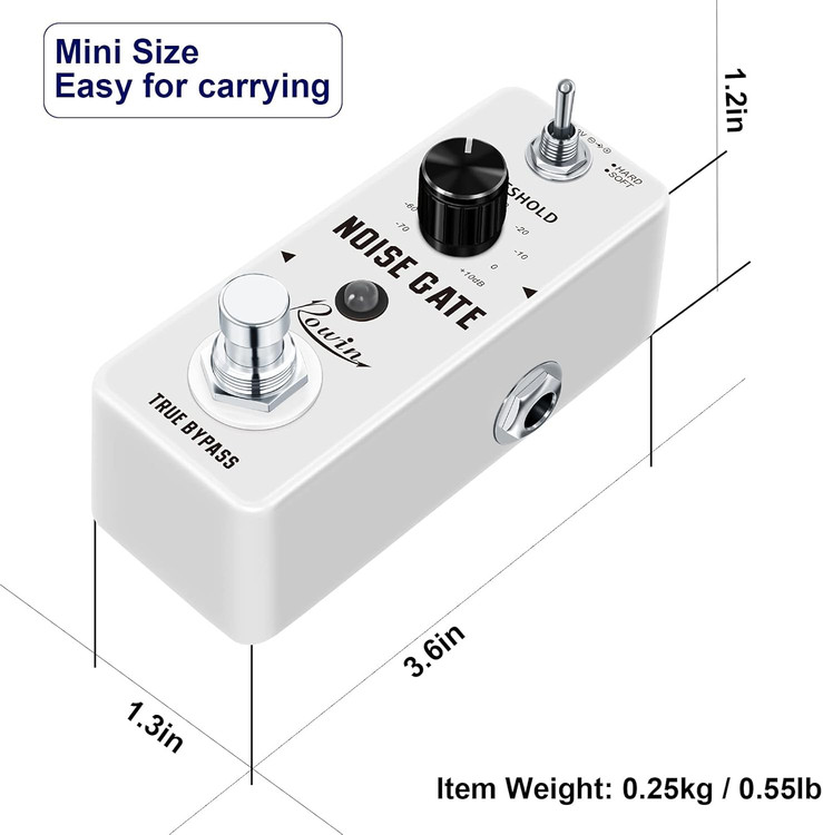 یونیت Rowin Noise Gate برای نوازندگانی طراحی شده که از پدالهای درایو، دیستورشن و هایگین استفاده میکنند و نیاز به یک صدای کاملاً شفاف و کنترلشده دارند.