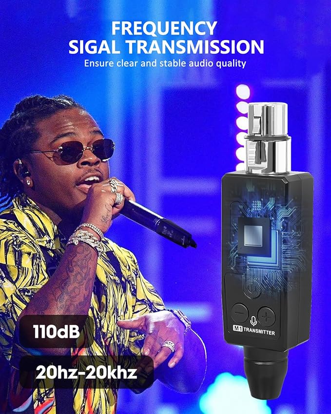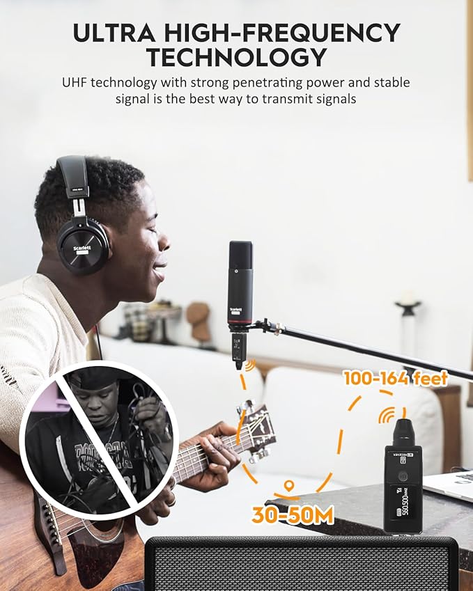 STRICH Wireless Microphone XLR Transmitter and Receiver, UHF Wireless Microphone System Plug-on, Wireless Mic Adapter with 48V Phantom Power for Dynamic Mic